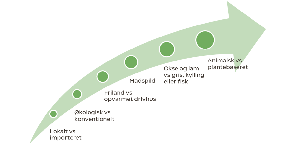 Det er vigtigste ift. klimaet er, at du som forbruger spiser grønt og undgår madspild. Det har den grønne tænktank CONCITO, illustreret i denne figur.