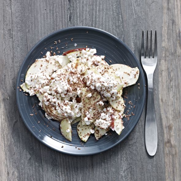 Æbler med hytteost og chokolade