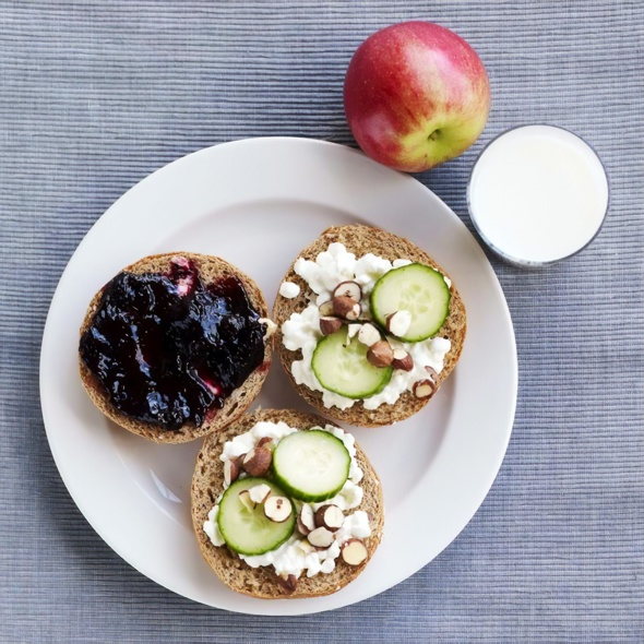 Fuldkornsbrød med hytteost og æble