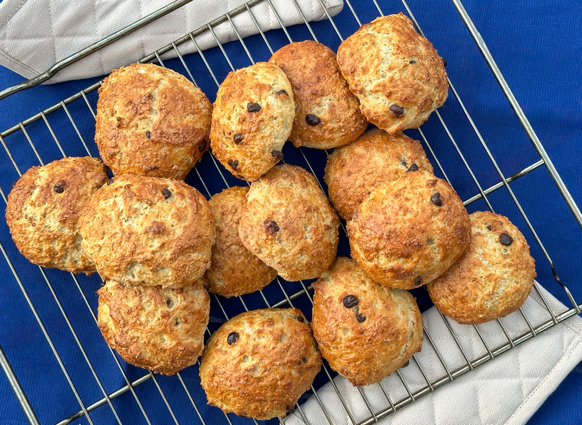 Bag de her lækre boller med banan og chokoladestykker, og server dem som et nemt og lækkert mellemmåltid.