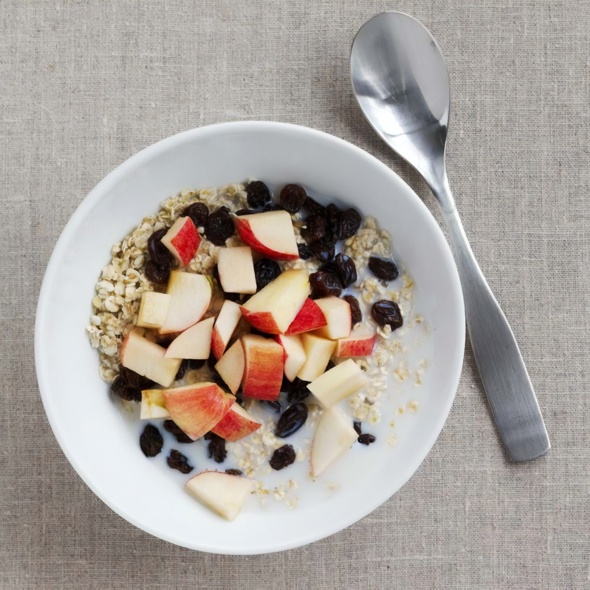 Havregryn med frugt og mager mælk giver en mættede start på dagen med vitaminer, mineraler og calcium. Havregryn er 100 procent fuldkorn.