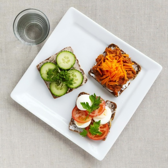Brug det pålæg, du har i huset. Husk fisk og grøntsager.