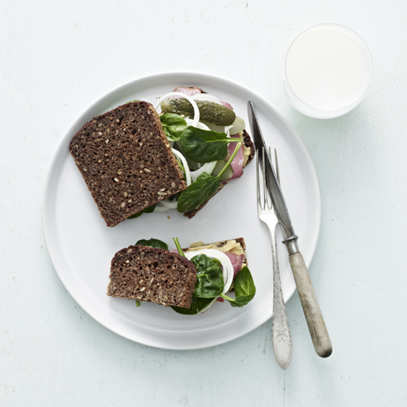 7Kom spinat og pastrami på brødet